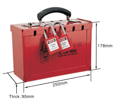 Переносной лок-бокс BD-X01. Рассчитан на 12 навесных замков, для навешивания большего количества, рекомендуем использовать множительную накладку. Оснащен несъемной и нескладной ручкой, удобной защелкой на крышке лок-бокса. 4 полиуретановые ножки предохраняют дно лок-бокса от царапин. Навешиваемая дужка замка не более 7 мм. Иготовлен из стали, толщиной 1 мм, покрытой порошковой краской. Размеры (ШхВхГ): 250х178х95 мм. Высота дана без учета высоты ручки.